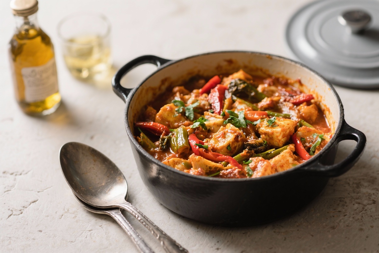 This version leans bold and cozy, with smoky spices, tender chicken, and hearty vegetables over rice. It’s the kind of meal that smells amazing, tastes better, and leaves you with just one pot to wash.